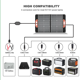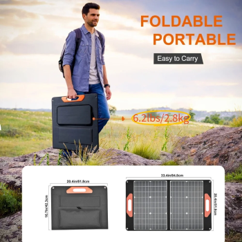 60W Portable Solar Panel is a reliable, practical, and convenient folding portable solar panel. With up to 23.7% high efficiency monocrystalline solar cells.