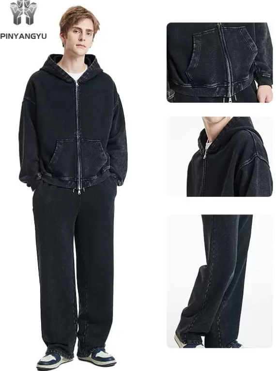 Custom Printed BOXY Oversized Hoodies for Men with Double-headed Short Zipper 100% Cotton Streetwear Style Eco-Friendly