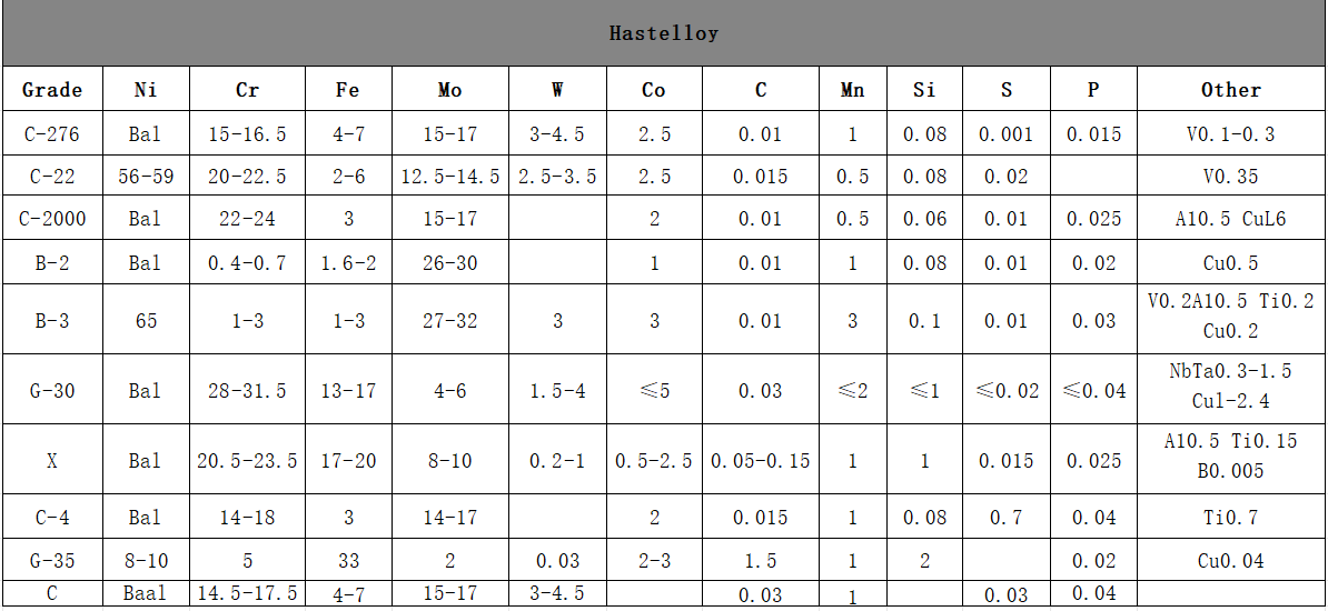 G30Hastelloy Alloy |